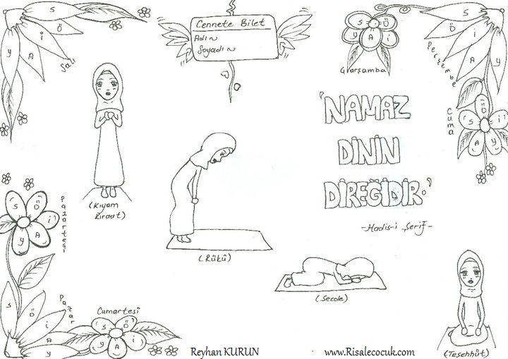 Etkinlik: Çiçeklerdeki her harf bir namaz vaktini simgeliyor. Her kıldığınız namaz sonrası çiçeğin yapraklarını boyayarak namaz çiçeklerinizi en güzel şekilde renklendirin.