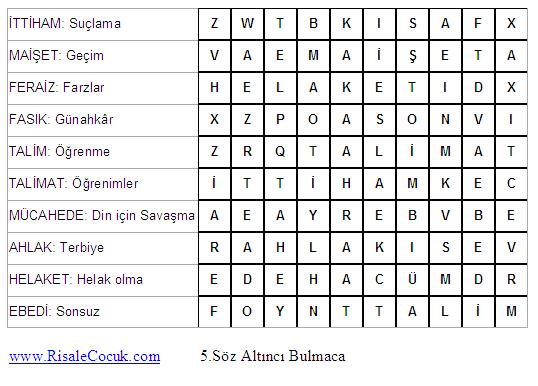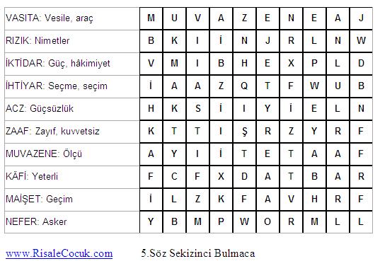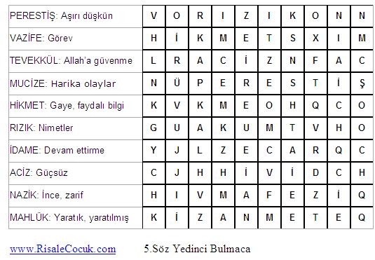 5.Söz Kelime Bulmacaları (İkinci Kısım)