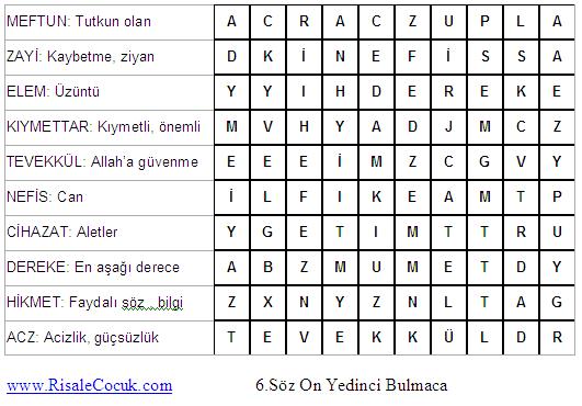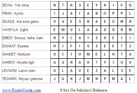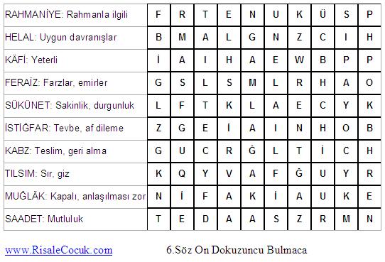 6.Söz Kelime Bulmacaları (Dördüncü Kısım)