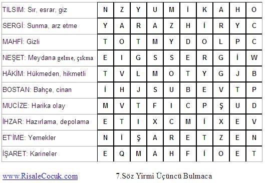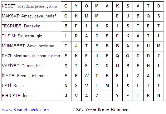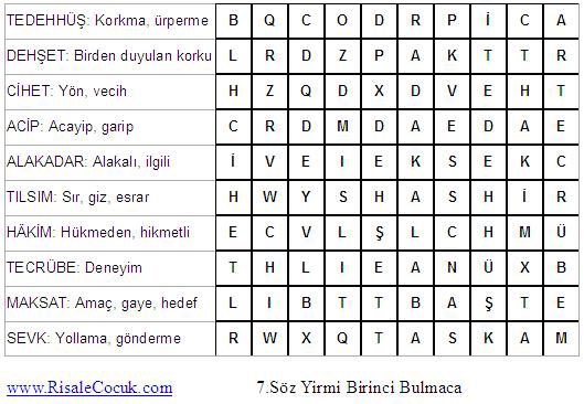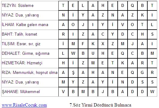 7.Söz Kelime Bulmacaları (Beşinci Kısım)