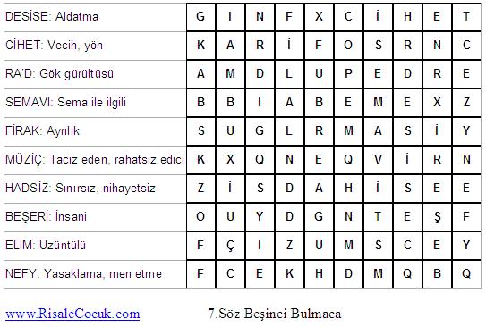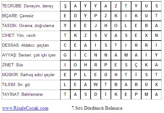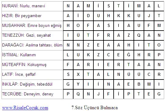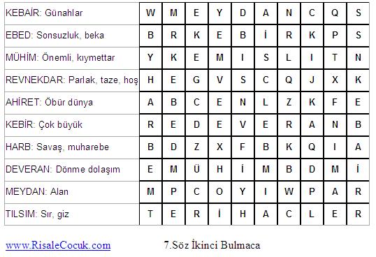 7.Söz Kelime Bulmacaları (Birinci Kısım)