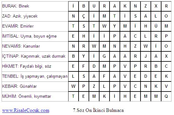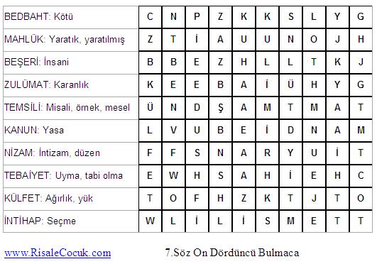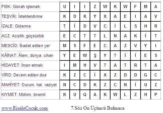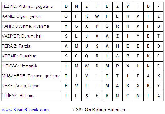 7.Söz Kelime Bulmacaları (Üçüncü Kısım)