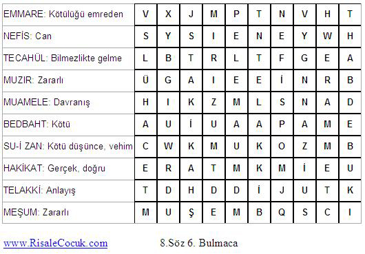 8.Söz Kelime Bulmacaları (İkinci Kısım)