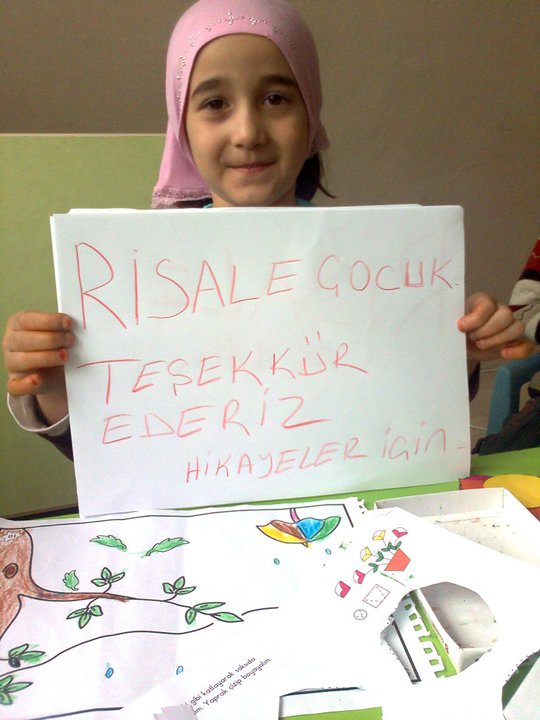 Hikayelerimizi okuduktan sonra, minik parmaklı ama büyük kalpli kardeşlerimiz bize teşekkür etmek için böyle birşey düşünmüşler. Hepsinden Allah razı olsun. Biz de ooo kalpleri koooocaman olan kardeşlerimizeee teşekkür ediyoruzzz :)Not: Bu kardeşlerimiz Said Nursi'yi hikayelerimizden tanımışlar ve O'nu çok sevmişler :)İnşaallah Said Nursi de onları sever. Ama seveceğini ümit ediyorum. Çünkü O daha önceden zaten küçüklere seslenmemiş miydi :)veeeeee Sınıflarının adınııııRisale Çocuk olarak değiştirmişleerrrrBize bu fotoları ulaştıran hocalarına teşekkür ederiz.