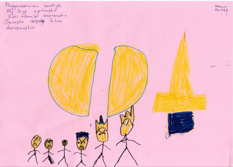 Sevgili Peygamberim, seni ne kadar sevdiğimi bilemezsin. Seni 0/0 100 çok seviyorum. Sen mutlu olursun,beni seversin diye suyu oturarak içiyorum. Kardeşim Saliha da oturarak içiyor. Hasan ile Hüseyin sen namaz kılarken senin sırtına biniyorlardı sende hiç kızmıyordun namazı kılmaya devam ediyordun. Ben de torunların Hasan ve Hüseyin gibi babam, dedem ve teyzem namaz kılarken sırtına biniyorum, anneminkine binemiyorum çünkü o beni taşıyamıyor. Bazen Saliha'yla sırayla namaz kılanların sırtına biniyoruz onlarda bazen kızmak isteyebilirler ama sen torunlarına kızmadığın için onlarda bize kızmıyorlar. Çünkü onlar bize kızmayınca sende mutlu olursun kızarlarsa da üzülürsün. Sevgili Peygamberim bence sen iyi bir peygambersin ve iyi bir dedesin.